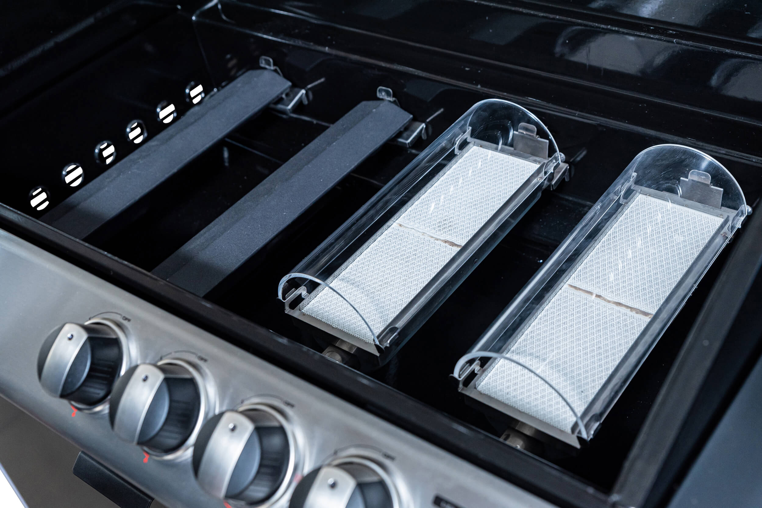 הסוד לתוצאות הצלייה המעולות של הטורבו קלאסיק טמון במבערי האינפרא אדום RQT בשילוב עם מבערים מברזל ייצוק, המספקים עוצמת חום חזקה במיוחד של 96,677 BTU. המבערים הייחודיים יוצרים חלוקת חום שווה על גבי כל משטח הצלייה, המחולק ל 2 איזורים – צד אחד רשת, ואילו הצד השני הוא פלנצ'ה רחבה. מבערי האינפרא מוגנים ע"י מגנים עשויים קוורץ, השומרים על המבערים היטב לאורך שנים, מונעים התלקחויות לחלוטין, וגם מאוד קלים לניקוי!